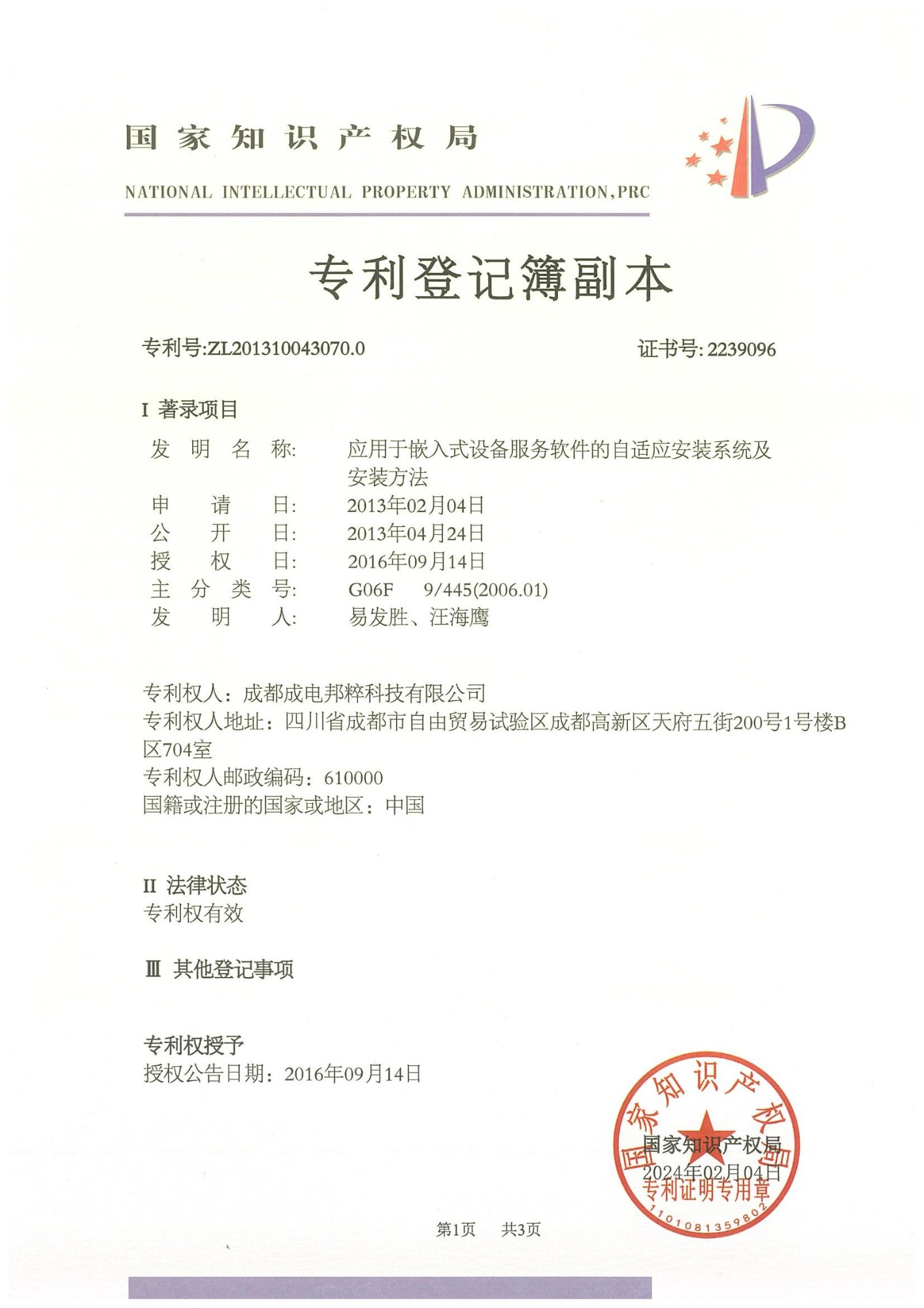 應(yīng)用于嵌入式設(shè)備服務(wù)軟件的自適應(yīng)安裝系統(tǒng)及安裝方法證書