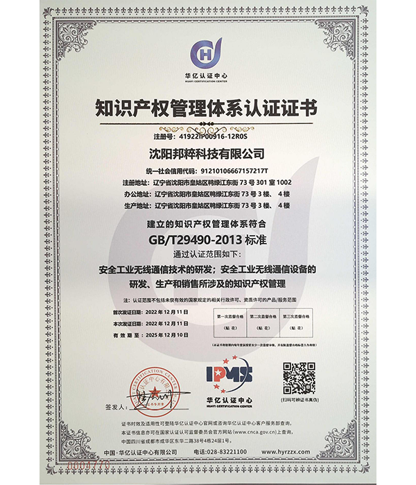 公司通過(guò)了質(zhì)量管理體系、環(huán)境管理體系、職業(yè)健康安全管理體系、知識(shí)產(chǎn)權(quán)管理體系認(rèn)證。